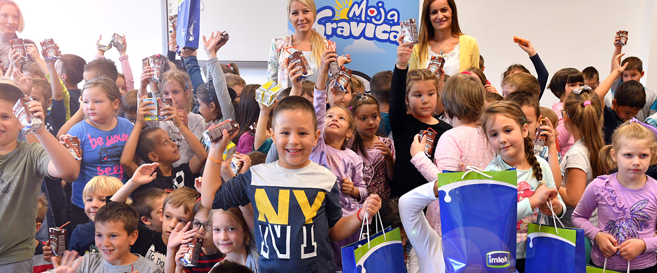 Representatives of the Imlek company distributed Moja Kravica dairy gifts to the little ones from more than 35 schools across Serbia, wishing them a happy start of school. The kids who just started school this year had an opportunity to enjoy their favorite Moja Kravica chocolate milk and Moja Kravica D3 milk, specially designed for children. Imlek company dedicates attention to socially responsible activities, especially helping the youngest ones to develop properly and grow up happily.