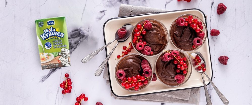 Na srednjoj vatri zagrejte Moja Kravica mleko i pavlaku za kuvanje do ključanja. Kada smesa provri malu količinu sipajte u smesu sa žumancima i dobro promešajte, a zatim sipajte i ostatak.