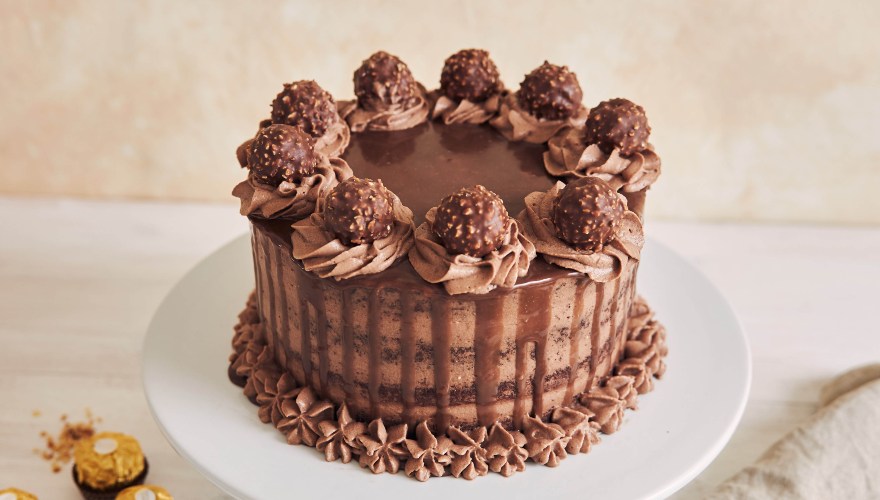 Ukrasite tortu Ferrero kuglicama, pospite čokoladnim mrvicama, seckanim lešnicima ili rendanom čokoladom.