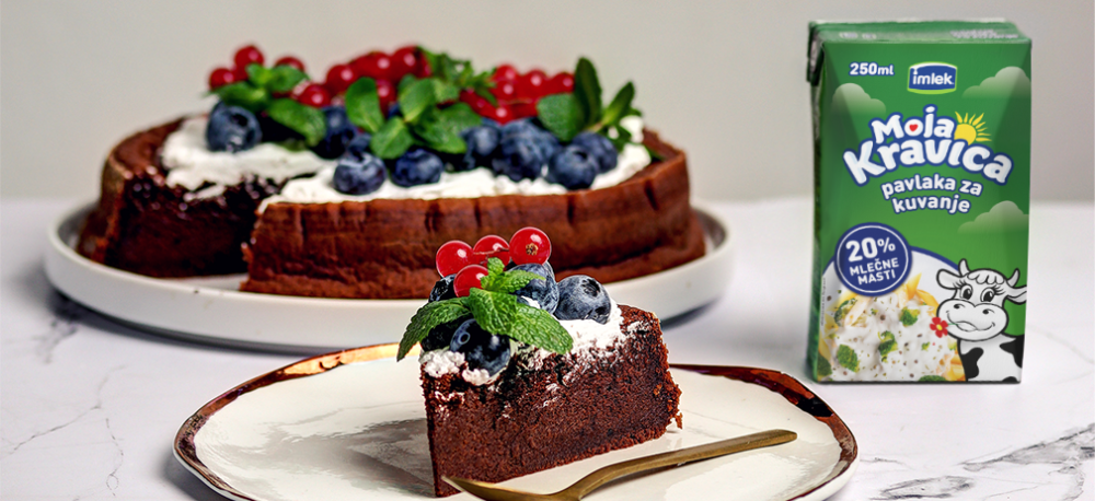 Omekšali maslac dobro umutiti. Dodati šećer i ekstrakt vanile i nastaviti sa mešanjem, a onda i jedno po jedno žumance. Zatim naizmenično dodavati miks brašna i kakao praha, mlakog mleka i pavlake za kuvanje. (Smesa će biti poprilično retka ali tako i treba.)