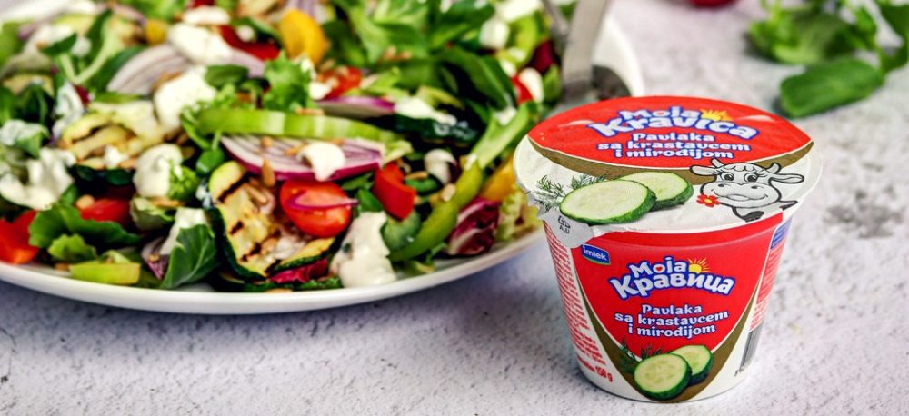 Sve posolite, pobiberite i preliteMoja kravica pavlakom sa krastavcem i mirođijom, te posuti sa malo semenki suncokreta.