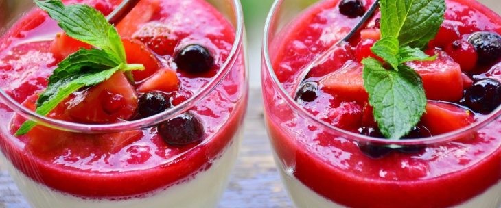 Za još lepšu panakotu, ukrasite je sa listićima mente – ona će dati kontrast crvenoj boji šumskog voća i zanimljivu aromu jelu.